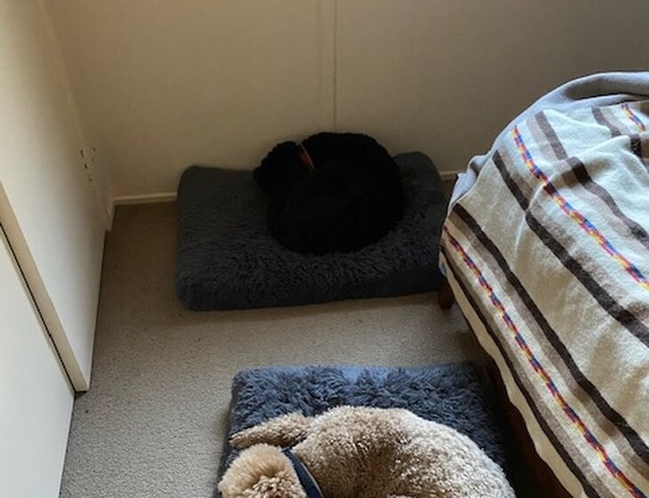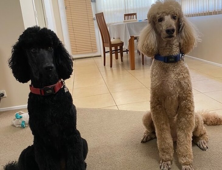 There are 2 standard poodles (7 years old), one Labrador-sized dog (10 years old) and one small terrier-sized dog (10 years old). All are very amiable and used to each other. They are indoor/outdoor pets and are walked daily (if weather appropriate) and brushed every couple of days. They are fed their meals morning and evening. All food will be provided.