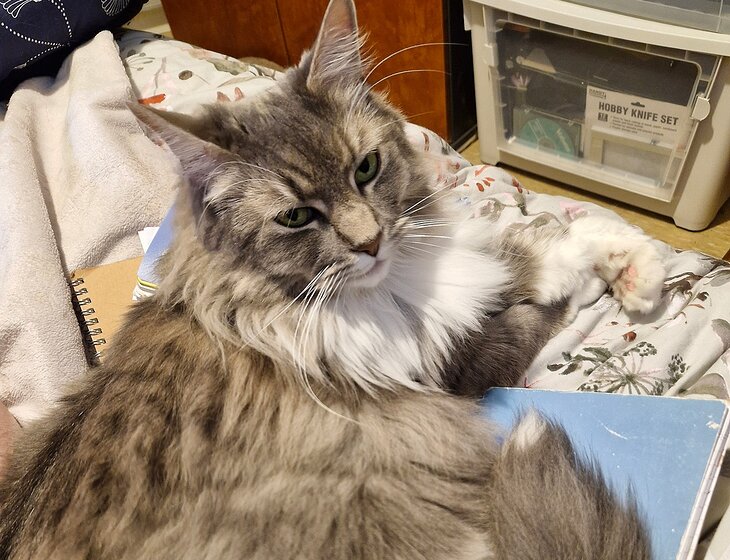 My older fur boy (Aiden) is easy to care for, but he does try to escape occasionally if you're too slow to go out the door or you aren't watching out for him. He's allowed outside occasionally on a harness and lead. Aiden is a friendly cat, but a little aloof. He loves cuddles, but in his own way, on his time. Once he knows you, though, he often follows like a lost puppy. He doesn't like loud or sudden noises.