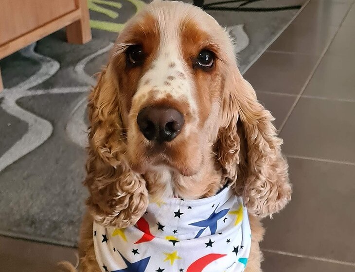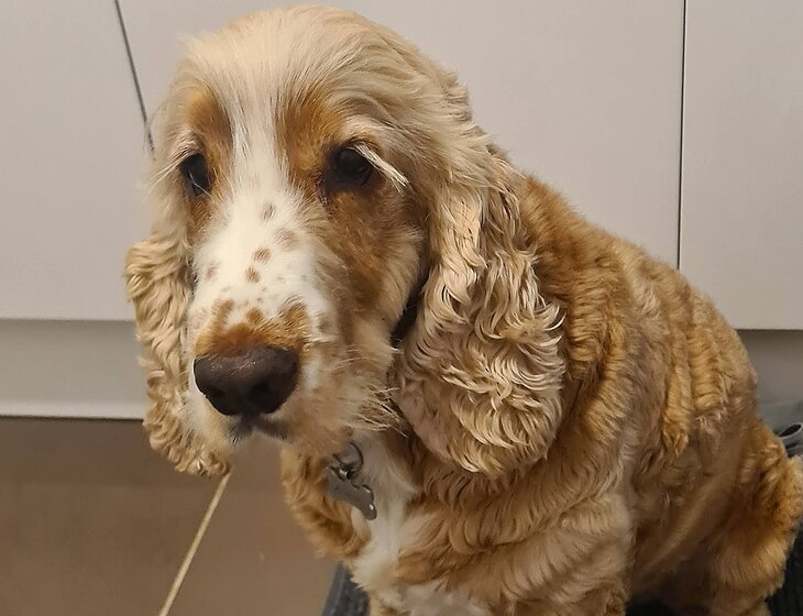 Care needed for a male cocker spaniel. He is predominantly an indoor dog and must be fed and given fresh water daily. He loves people and enjoys companionship but does not get along with other dogs, so no walking is required.