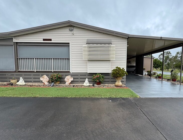 We live in a huge community lifestyle village designed for over 50s with over 410 ppl & over 200 house. There is a BIG4 Caravan Park Connected so it has ALL the amenities you need for your caravan/motorhome. We also had a caravan set up on the north facing side of the home with a large concreted area, 15amp power outlet & water tap. So if you want to set up it’s all ready to go.