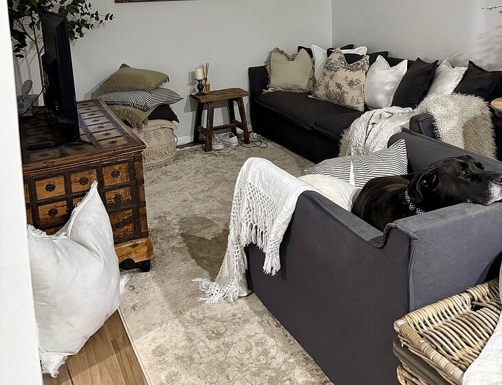 Elka is 7 years old, she is extremely shy and anxious and does not generally like males who she doesn’t know. She is a gentle giant (Great Dane, Mastiff, Boxer cross), an inside dog, low maintenance and loves cuddles. She doesn’t like walks but enjoys the occasional car ride and loves lazing in the sun or on the couch with her humans