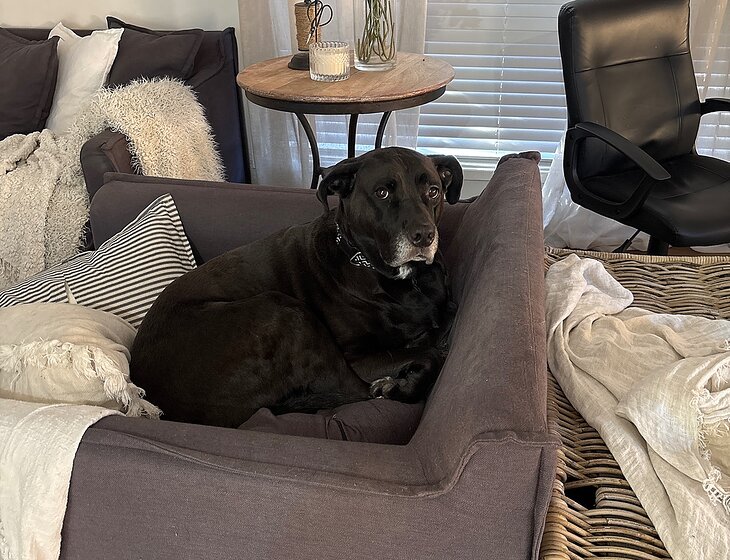 She is getting on in age & sleeps a lot more these days. Unfortunately she does not like cats and isn’t tolerant of other puppies in her space anymore. Older age has come with her also occasionally waking you during the night to go outside, so this role would be suitable for a female with no pets.