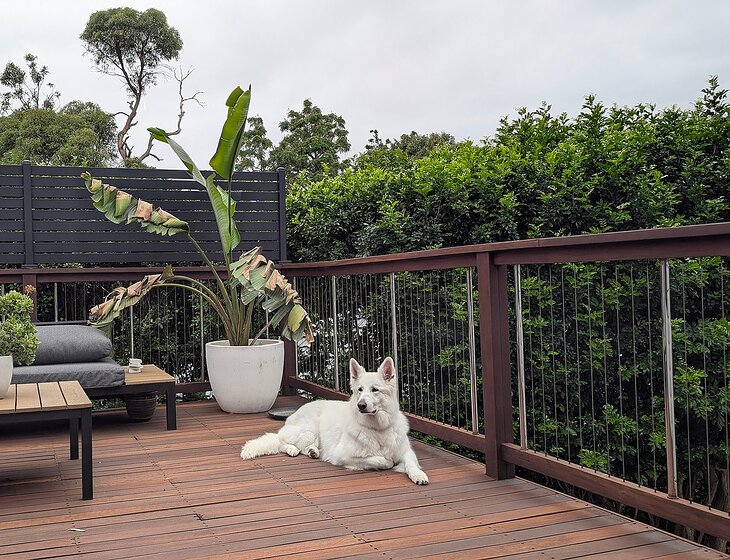 We have a Swiss Shepherd called Mia, who is 8. She doesn't require much in terms of care, just a walk each days if possible.