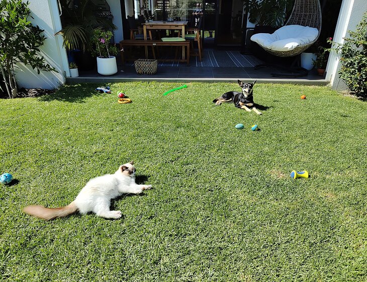 We have two dogs (both Kelpies) - one young (3), one old (14) and also have a ragdoll cat (2) to look after.