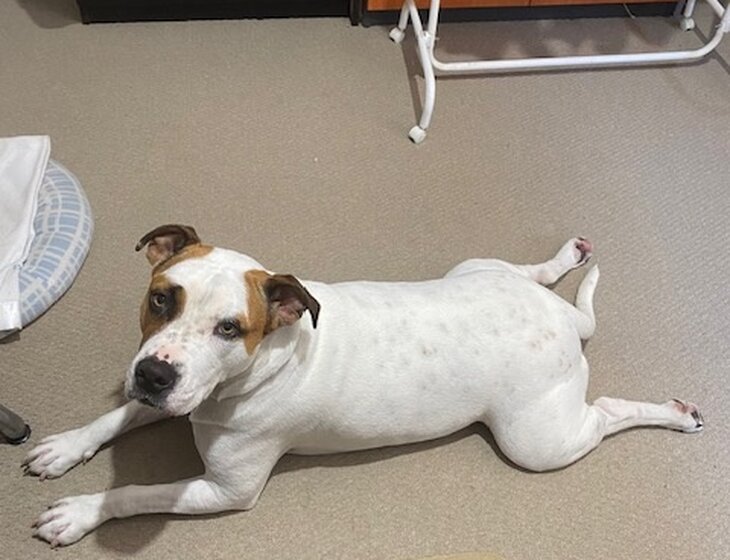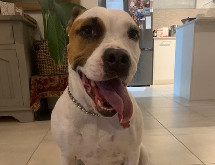 She is a Staffy cross, 5 years old. She is a bit anxious around people she does not know (especially other dogs, males and small children.) She is very playful and affectionate once she is familiar with you. It will be great if she can be taken for a walk daily or every other day as she has a lot of energy. Roxy loves attention and loves to play around with her balls.