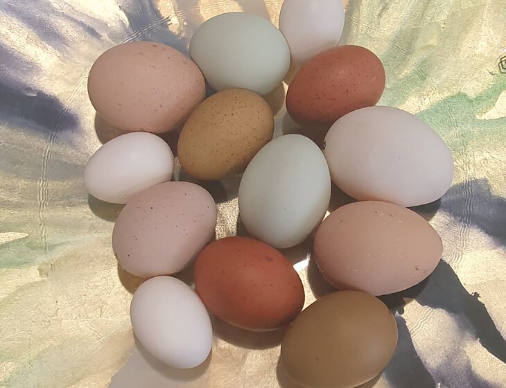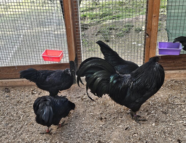 There are about 90 heritage or rarebreed chickens to be looked after. We have a couple (2 yo pair) friendly Maremma looking after the flock.