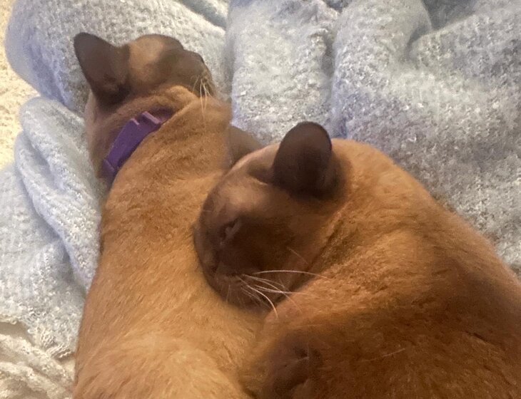 We have to beautiful Burmese cats that rule the roost.