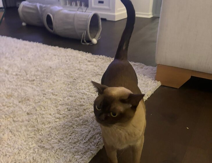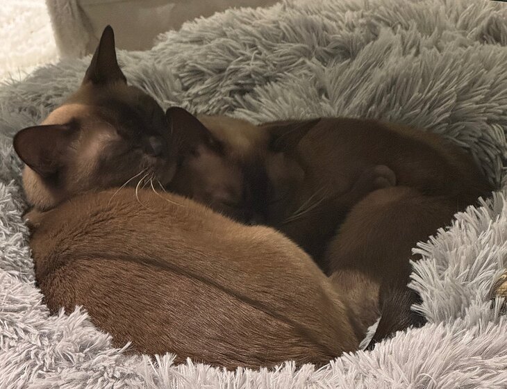 We have to beautiful Burmese cats that rule the roost.