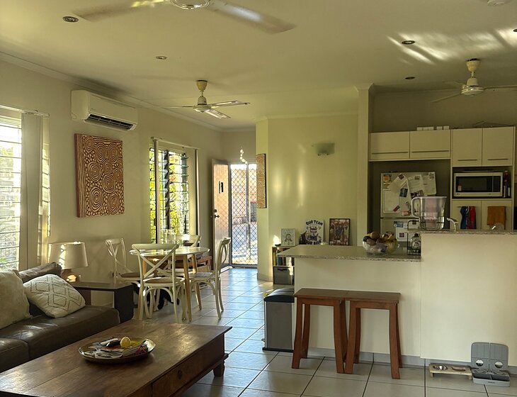 The house is a bright, airy 3 bedroom and 2 bathroom townhouse with off street parking and aircon and fans throughout. The courtyard has a pool, seating and bbq under fairy lights. We are walking distance to Nightcliff shops and around the corner from the free bus that goes through the city.