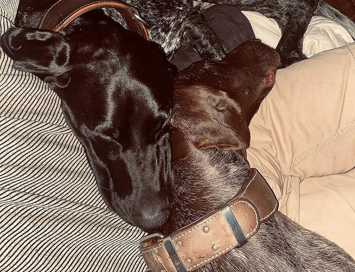 Our two dogs, Floki (8) and Freya (4.5) are German Shorthaired pointers who require daily walks, feeding and petting. They are the cuddly type who enjoy interaction and company. While they live outside in the day-time, they enjoy the interior luxuries in the evenings.