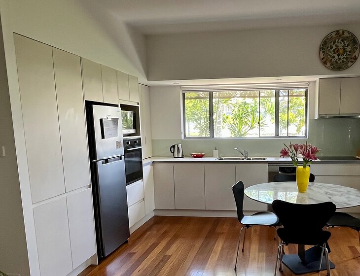 Two bedroom apartment on ground floor of 8 unit building. Nicely furnished and very comfortable. Apartment borders onto grassland and tennis court, only a five minute walk to Coffs creek and off leash dog friendly beach.