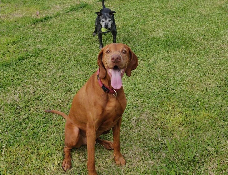 We have two outside dogs. A 14-year-old English Staffy (Bronte) and an 11-year-old Vizsla (Ollie). Both dogs are very affectionate and good company. Other than taking them walking daily, feeding them twice a day and giving them a pat, they are nice and easy to look after.