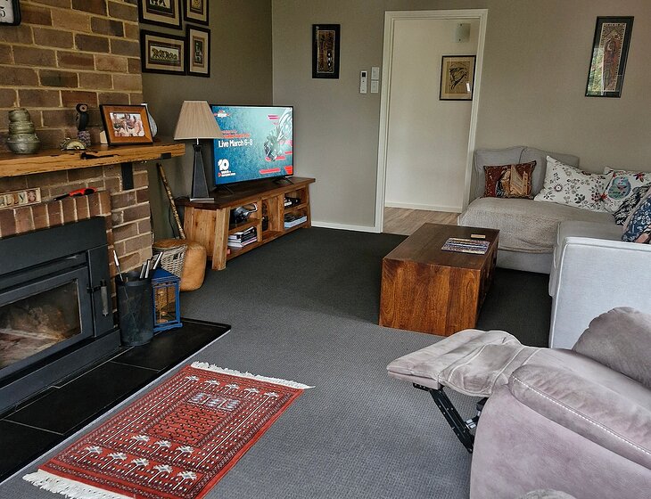 Comfortable 3 bed home with ducted heating, wood fireplace and AC. Apple tv, Netflix, internet available.