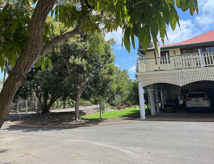 I live on 1 1/3 acre fully gardened in an old queenslander which also has a self contained seperate flat downstairs. It is a private sanctuary and just a short 5 minutes drive to Coonarr Beach
