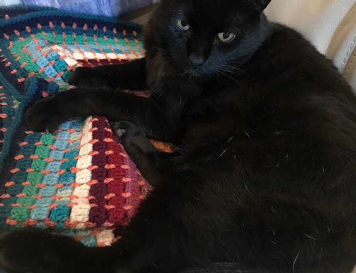 One all black timid male cat to be looked after, fed and medicated (tablet),