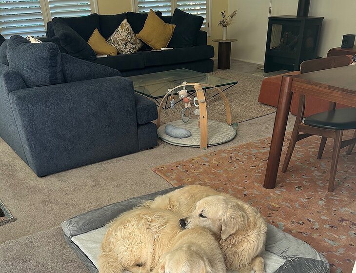 “Absolutely loved Claire’s home and caring for such beautiful well mannered golden retrievers. They were so nice to my little old pug Preston everyone was a happy little family. Would come back to Claire’s home anytime ,very comfortable in a great little town., We really enjoyed this house mind. Thank you Claire.”