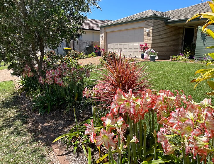 Small gated community of 20 homes, communal pool, walking distance to ocean. 4 bedroom home fenced . Regional city Bundaberg 16 minutes away. Bargara tourist area close by- shopping, coffee 10 minutes drive and Aldi Woolworths stores. 1 Labradoodle 6 years old- Odie and Maple cocker spaniel 13 years. 18 hole golf course very close by, golf course runs through area. Kangaroos friendly on walks. Whales pass by in September and Kagari and Hervey Bay close by.