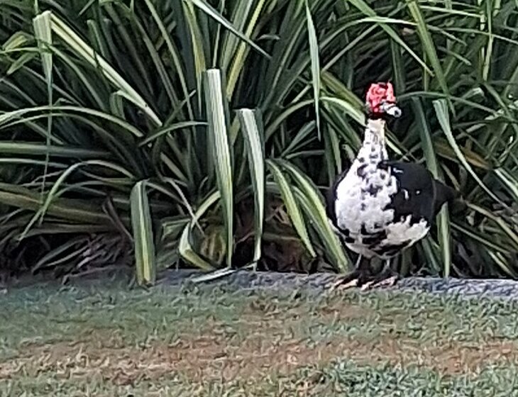 Dogs are friendly ,cat a home body and a 4 feathered friends( hens)and ducks