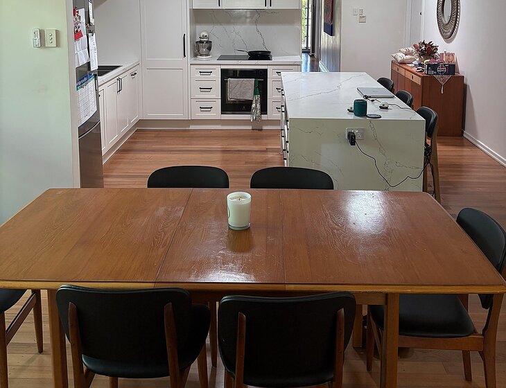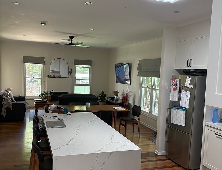Modern post war house - 3 bedrooms and 2.5 bathrooms with open plan kitchen, lounge and dining. There are 2 small lawn areas that need watering and mowing (although we could organise a mowing service if needed).