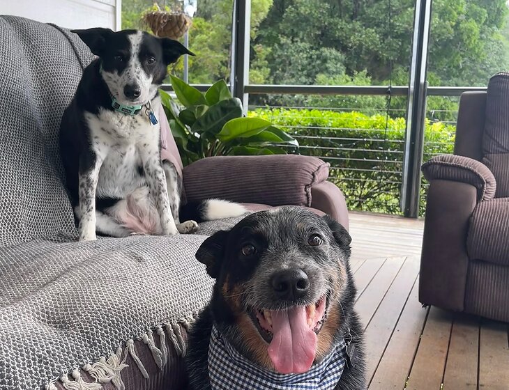 Our dogs who think they are human are a Border Collie x Kelpie 13 years old and a Blue heeler 10 years old. They like heaps of cuddles, couch time and 20 minutes ball time each afternoon. They are very low maintenance pets but do like to live inside most of the time and be around you. Both former rescue dogs who need to feel safe. Both require daily medication.