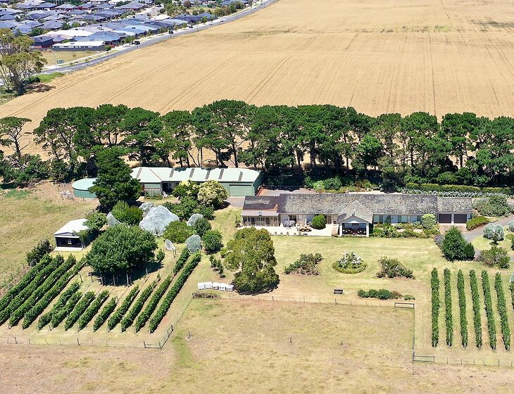 Micro vineyard , many fruit trees , children's activity space. Views to Geelong across Corio Bay.