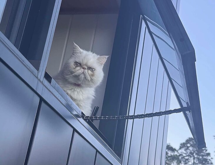 In return I offer a tiny home to stay in, with a loft bedroom, small bathroom, kitchen and airconed lounge area. The space is to be shared with our cat Koya.