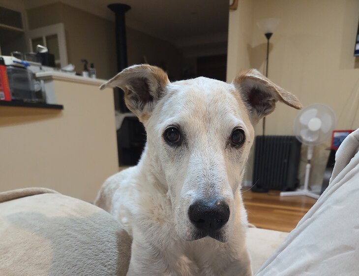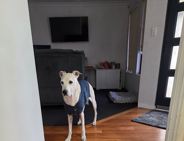 Thomas loves nothing more than company and a cuddle on the lounge and short walks in the nearby park or to be taken down to the beach for a walk.