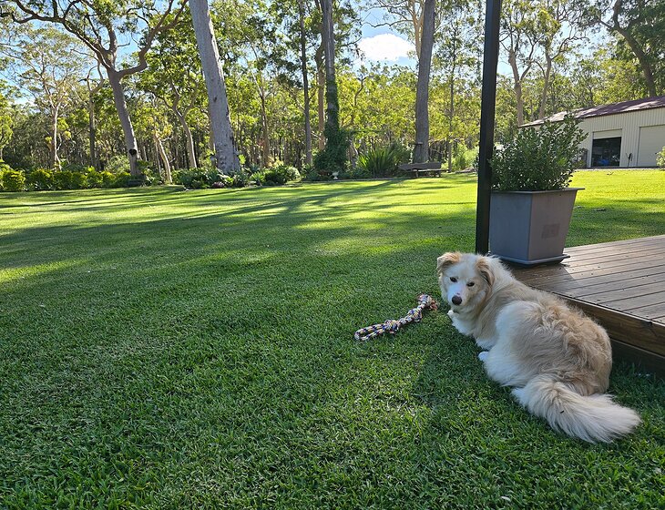 We live on a 3 acre property approximately 8 mins north of Tuncurry township and beaches. The house is 14 years old with bush aspect . We have 1 cat and a very energetic 2 year old border collie. Maisie expects to be walked daily and entertained. She is mainly an outside dog. The cat is outside and really only comes to the house to be fed. . We don't expect any gardening or lawn maintenance only our house and pets to be cared for while you enjoy the beautiful local area .