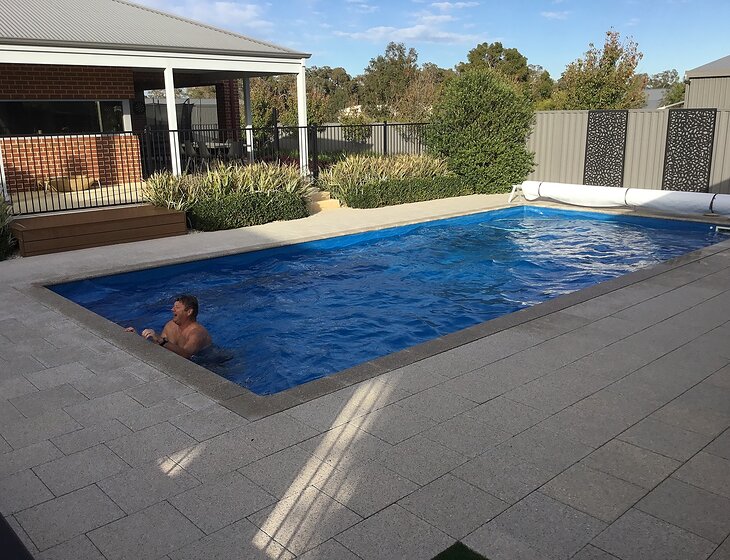 We have a lovely multigenerational home that we share with our son and his family. We are completely self contained with our own backgarden etc but shared pool area. We usually leave our dog Letty, in the care of our son but have decided she would have more company if someone was staying in our granny flat with her. We have parking for a caravan if you are travelling. You would have your own private 2 bedroom home and garden, but would not have to look after the pool etc as our son would do that.