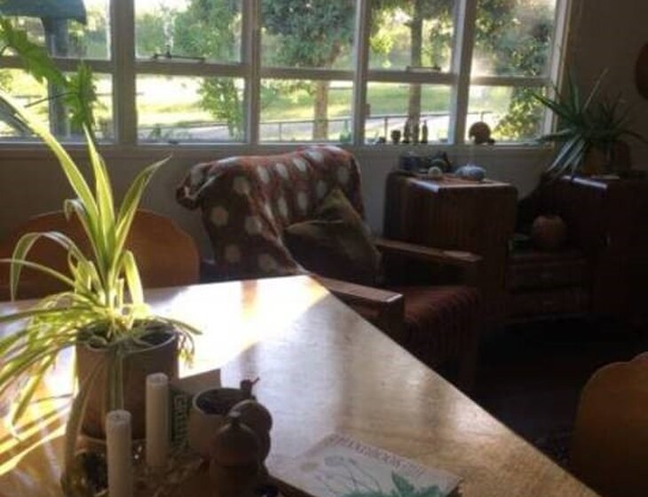 My home is a small and tidy two bedroom plus study on a suburban permaculture farm. The lounge area is airconditioned. The area is quiet and green but walking distance to shops and train station. Kangaroos visit the park across the road and there are lots of birds around. I have two goats, nine chooks, two geese, three quail and five cats (two of my own plus three foster cats). You can help yourself to a large vegetable garden and eggs. I need someone willing to do morning and afternoon feeds daily (usually around 6.30am and 4pm). If there's no rain, it would be great if you could water some of the veggies. You can find my farm on instagram by searching for 'westbournefarm'