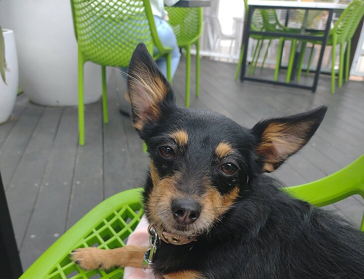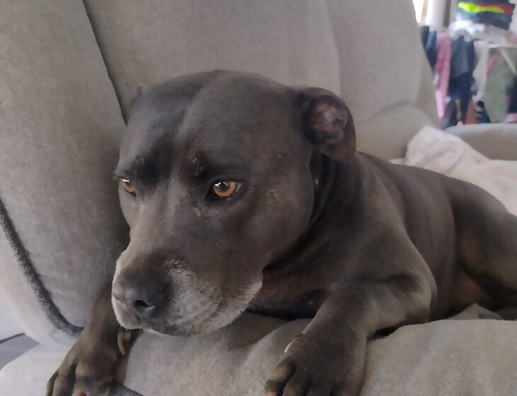 Indie – an 8-year-old female Staffy who is super friendly. She can be a little excited at first, but once she settles she’s a total couch potato who loves company and cuddles.