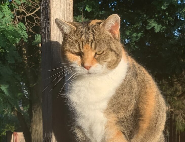 1 x resident 5 yo cat, Priscilla. Likes cuddles, patting and two daily meals, breakfast and dinner.