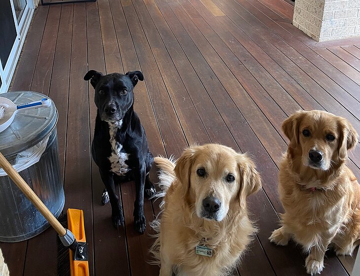 My partner, baby and I are going away for two nights and are hoping to find someone that is playful and loving to sit our three fur babies. We have two gold retrievers, Bailey and Bobbi (both girls), and a mixed rescue dog called Wesley (boy). They need company and love cuddles. The two retrievers like a walk but can survive a day without. Wesley is a rescue and is hard to walk so he won’t need to be taken out while we’re away. He is also very clingy and wont stop sniffing your body until you’re firm with him. All 3 dogs are very excitable and high energy at first, they soon calm down and will happily sleep at your feet. They are all very friendly and best of friends.