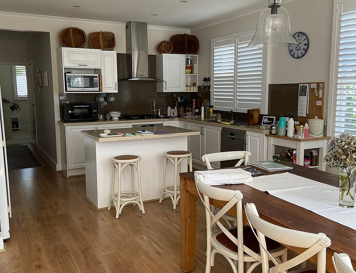 We live in a 3-bedroom, 2-bathroom weatherboard cottage with heating, cooling, outdoor spa with an outdoor kitchen and BBQ, wine fridge and TV, wifi, Netflix and many other features.