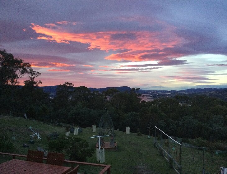 Our peaceful retreat is a 3 bedroom house surrounded by 10 acres of native forest with views over the Derwent River. It is only a 30 min drive from the Hobart cbd. Warm and cosy with a wood heater and aircon. I will be away for a week between Christmas and new year - happy to accommodate a few days before and after. Includes looking after my 2 large curly coat retrievers and a chicken - free eggs.