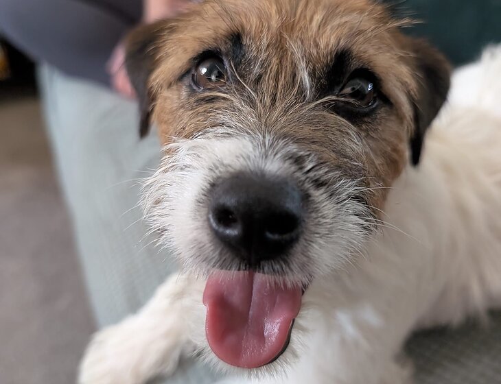 He is 9.5 months, very friendly and affectionate. He only needs 1 walk a day, but of course would be happy with more.