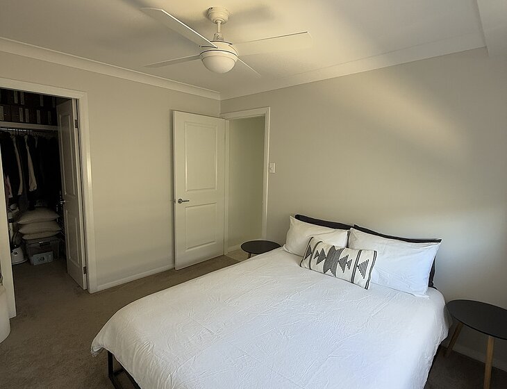 The house has ducted air conditioning/ heating. The house is 3 bedrooms, our main bedroom is up the front with ensuite (we ask please don't use). The spare bedroom (house sitter to use) is over the other side of the house with it's own toilet and full-size bathroom with bath tub. The third bedroom is an office with two screens you are welcome to use. We are very clean, non smokers, you will walk into a lovely clean home.