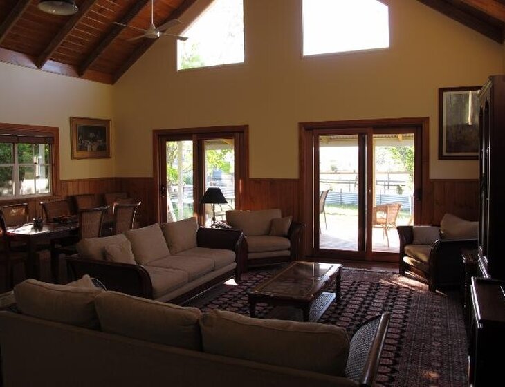 Comfortable farmhouse with 4 bedrooms and 3 bathrooms with lots of verandahs to relax on.