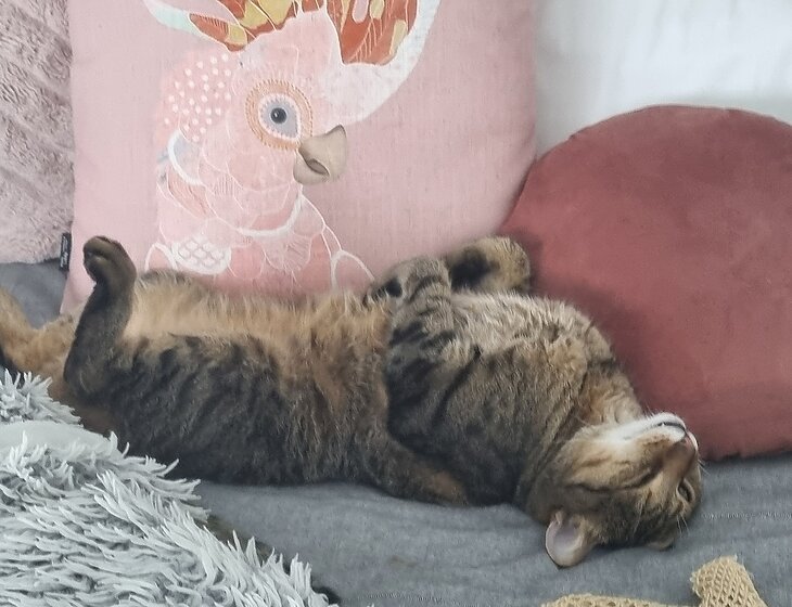 Our cat is, well like a cat, sleeps a lot, and loves to cuddle.