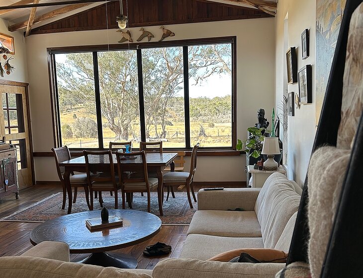 We live in a converted very funky 1920's old woolshed. Only 15minutes from historic Braidwood. Set on 100 acres, with secure dog fences. We are solar passive and rely on rain and creek water. We have inside bathroom and also and fun luxury outdoor bathroom with a composting toilet. So you will have a luxury off-grid experience. We have super friendly Jack Russel, who loves cuddles and kiss's. His brother is an 8 year old chow cross sharpei. He loves his own space, doesn't require cuddles, but loves his food and knowing someone is around. They both love being outside, a bit of ball throwing with benny the JR and Harvey the chow loves to steal the ball and sit on it. They are adorable in their own right and very loved. We have a veggie patch which needs a water and chickens are joining the family for you to enjoy fresh eggs. They will also require fresh water and some TLC. We may live in a woolshed, but we have all the mod cons, including a beautiful wood fire inside for you to enjoy and an infrared sauna. Peace and quiet is on the menu.