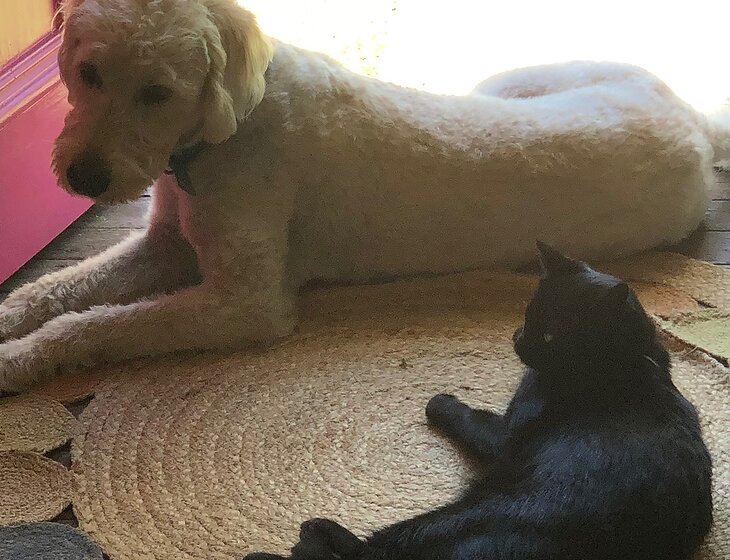Our pets include a well behaved loving five year old Labradoodle, and a self sufficient and friendly cat.