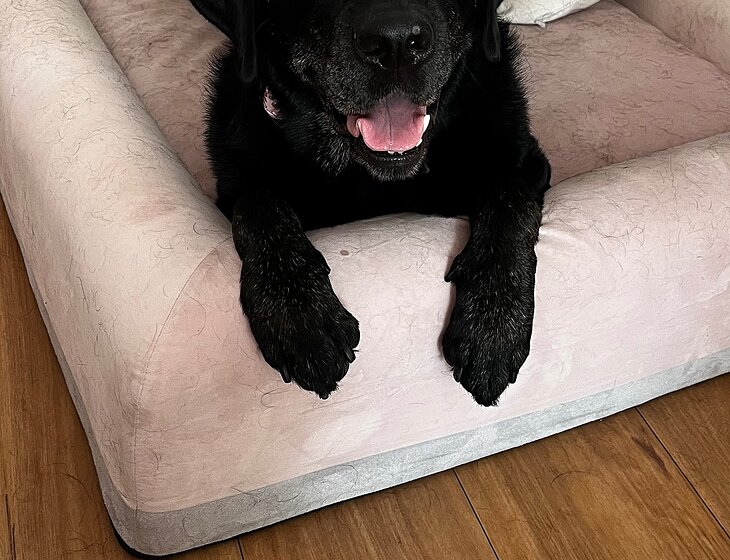 She’s a sweet girl who loves snoozing, chasing a ball and sniffing on her walks