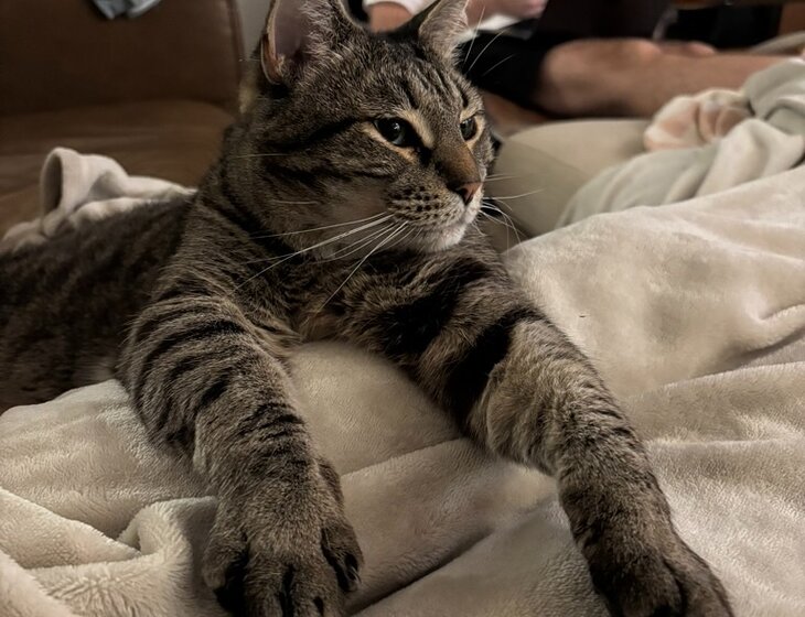 We have a beautiful 11 year-old tabby cat named Tate, who is indoor only due to a health condition. We have recently enclosed our entire courtyard with a secure cat net so he has a lovely outdoor play area that he can safely explore under supervision, however we would need a house sitter to be diligent about keeping all other doors and windows to the outside closed to prevent him from escaping into the neighbourhood. Aside from this, he requires no special care or medication for his health condition so is very easy to look after! Essentially you would just need to feed him, scoop out his litter tray once every couple of days and, of course, give him a bit of love and attention every day. He’s a super well-behaved boy who loves some human company and cuddles but is also perfectly happy to be home alone during normal working hours. His favourite hobbies include receiving ear, chin and belly rubs, enjoying the occasional brush and lapping up some quality evening pets on your lap, on the sofa or in bed! He also particularly loves a short play with a wand toy or two just so he can show off how high he can jump! Otherwise, being a slightly older boy, he is pretty independent and will spend most of his days moving from one sunny spot to the next for a lengthy snooze.