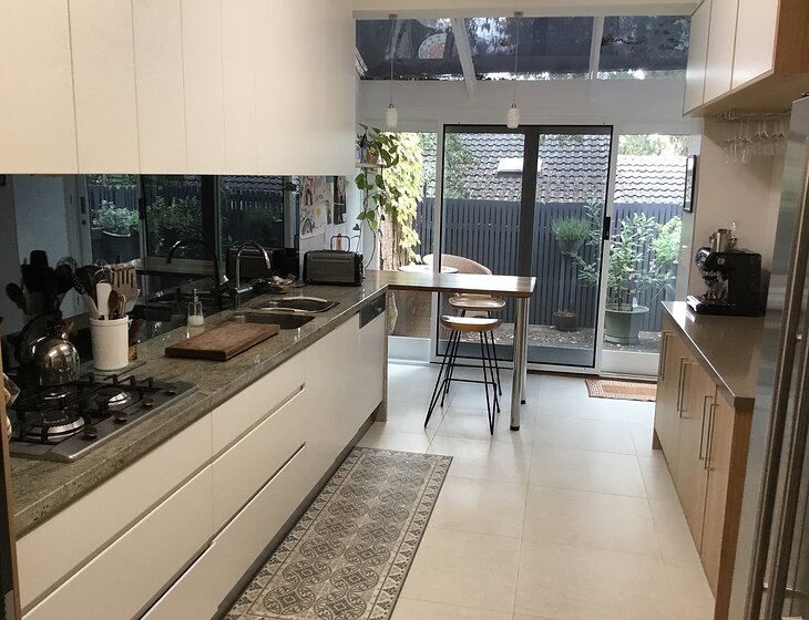 We have a comfortable 2 storey townhouse with 3 bedrooms (all upstairs) in a very quiet location near to parks, gardens, cafes and restaurants with train and trams within an easy 10 minute walk. There is a large sunny courtyard.