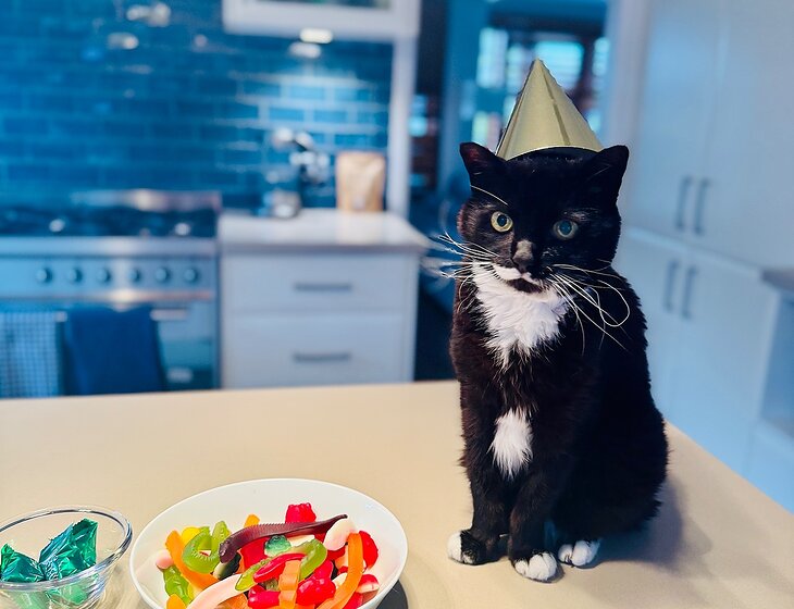 Chelsea and Scooter have automatic feeders but usually enjoy half a pouch each for dinner. They have their own litter trays with quality kitty litter which needs to be scooped morning and evenings. Isabella eats all through the day and generally sleeps out on the terrace away from the playful younger two.