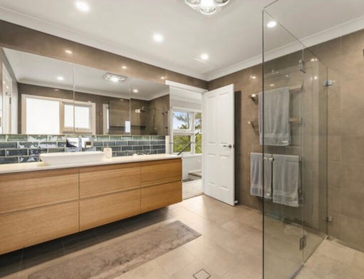 Master bedroom has views over trees on the third floor, open sky with morning sunlight streaming in. Comfortable king size bed and smart television with large modern ensuite. Bed linen and towels are premium quality. Reverse cycle heating and cooling with a timer.
