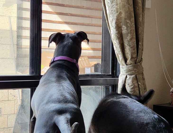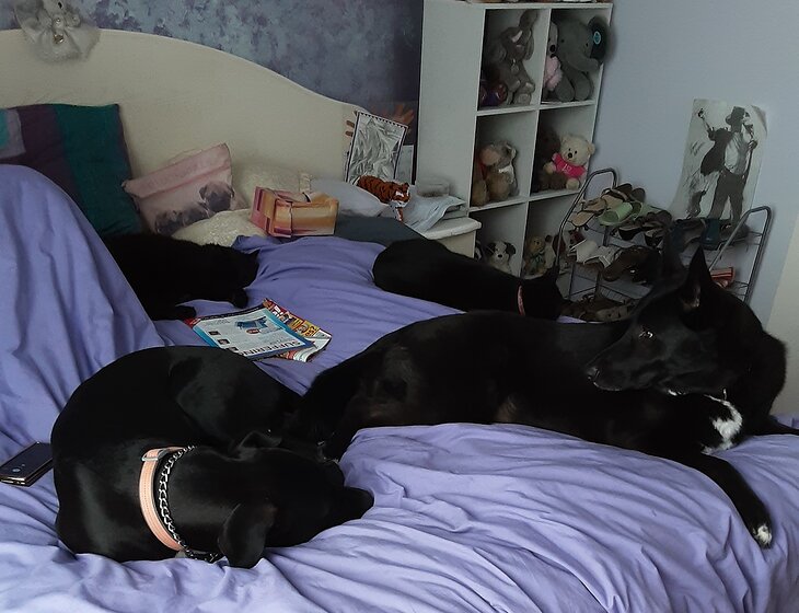 2 big dogs that have been spoilt rotten. 2 cats who do their own thing, they all get on. Dogs are very friendly, have set meal times.