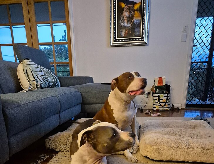 Our main requirement is around our 2 fur babies, 2 American Staffys that think they're people, Daisy gets particularly excited with new people so if you dont like big dogs then this isnt the house sit for you.