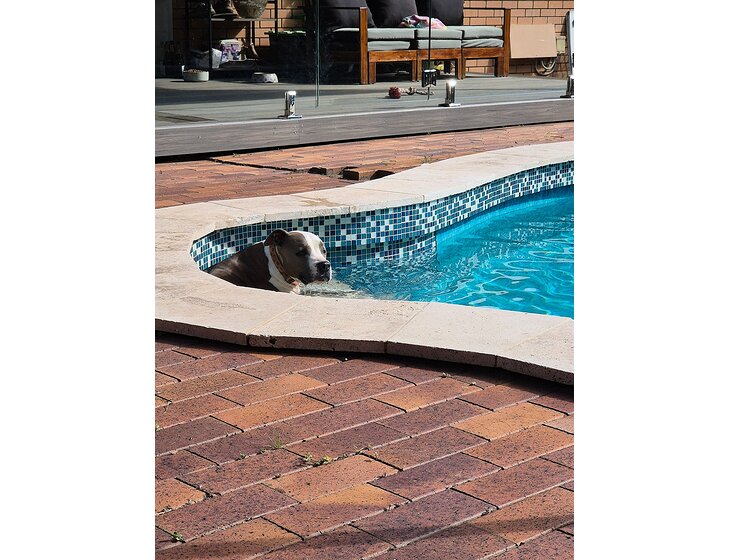 They are very friendly and happy playing around the yard and Daisy will swim (often).