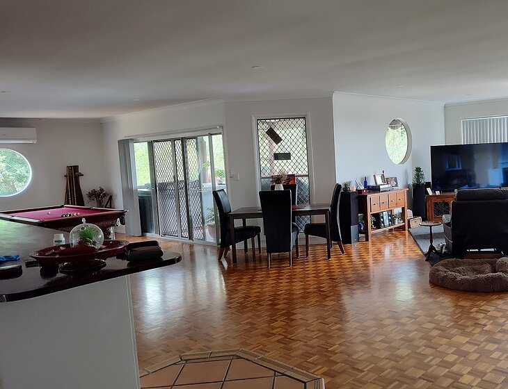 We live in Edens Landing south of Brisbane and have great dogs. Storm a 12 year old Lab x Border Collie and Wolverine 9 1/2 years Lab x American Staffy he still thinks he is lap dog and wants hugs . We just need someone to stay at the house and feed the dogs in the morning and night time and play with them and basically because they are older dogs, spend time with them.They do have certain medications they need but nothing that doesn't just go in their food.
